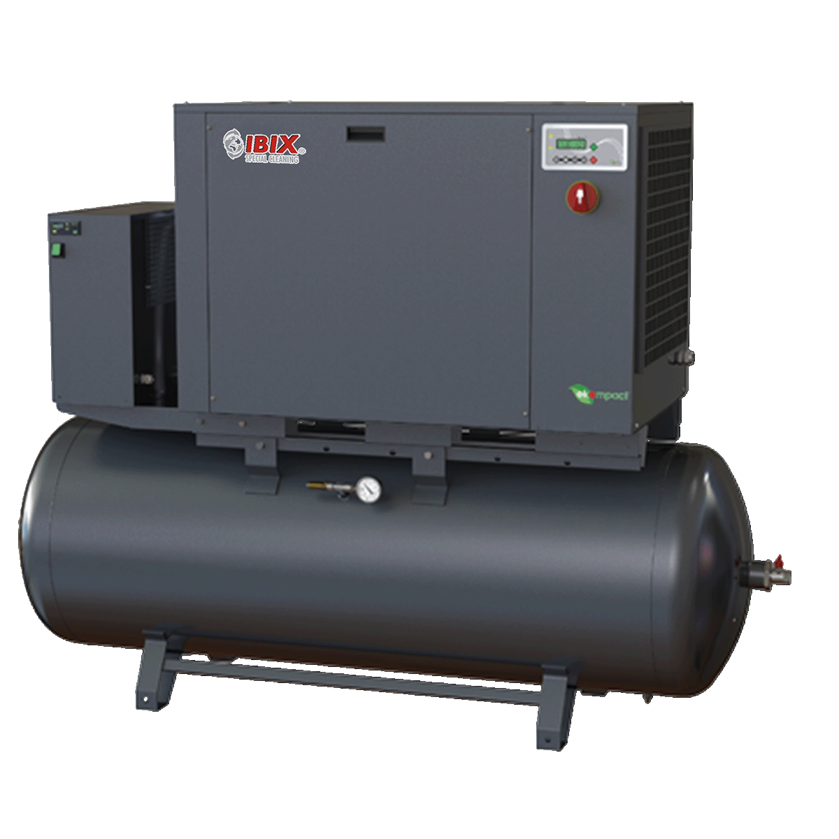 L’affidabilità dei componenti garantisce aria perfettamente trattata, priva di condensa. L’aria atmosferica viene pompata dal compressore attraverso l’essiccatore e successivamente accumulata nel serbatoio.