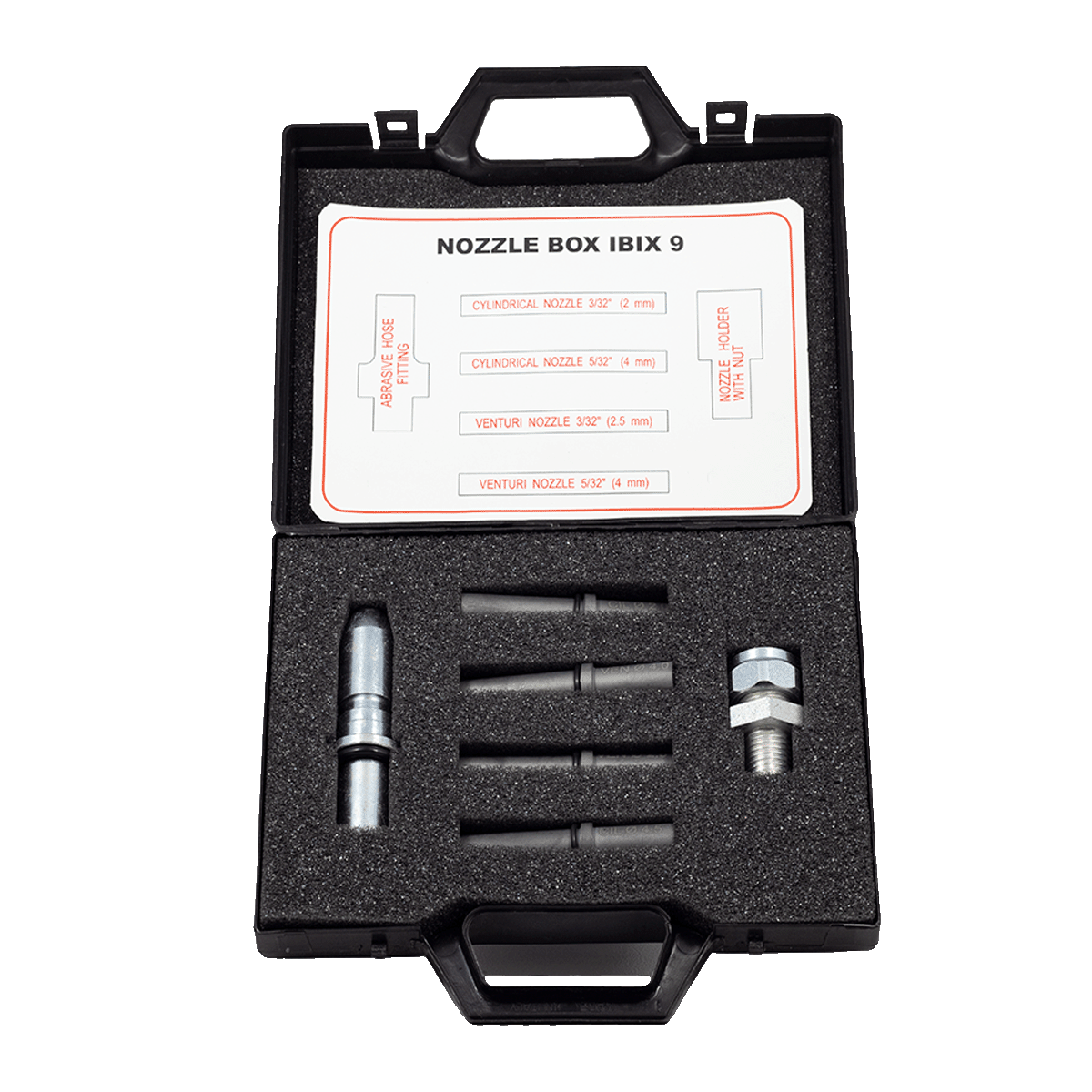 Il kit è composto da ugelli cilindrici selettivi che concentrano il getto dell’inerte per una pulizia decisa e precisa e da ugelli Venturi che aprono la zona di intervento garantendo un trattamento delicato. Gli ugelli sono realizzati in carburo di tungsteno, un materiale resistente che garantisce durata e forte resistenza all’abrasione.