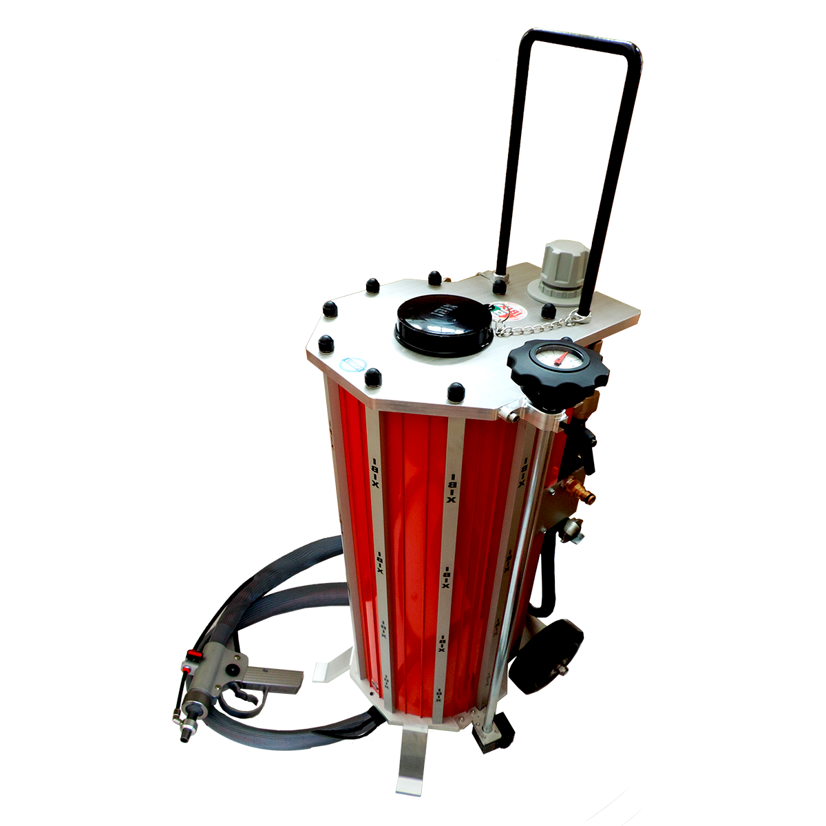 • Regolazione dall’alto: miglior comfort di utilizzo, impugnatura ergonomica, più facile da regolare con precisione. Manometro per misurare accuratamente la quantità di inerte da utilizzare.