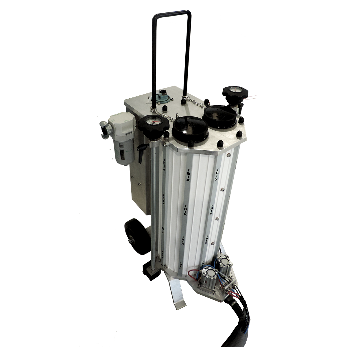 La tecnologia TWIN rivoluziona l’aeropulitura con la possibilità di miscelare due differenti inerti in un unico processo operativo.